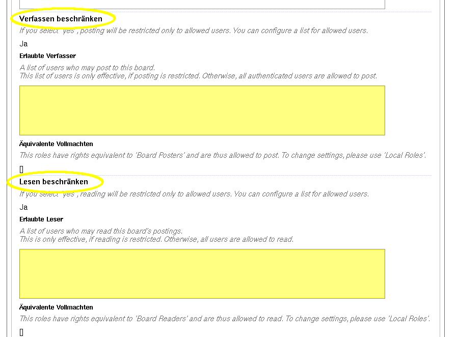 Falls ja, geben Sie bei der Konfiguration der einzelnen Discussionboards im dafür vorgesehenen Feld (Abb. 7) die User an, denen Sie das posting erlauben.(Es ist also genau umgekehrt wie bei der 'black list', wo die angegebenen User geblockt werden!)
