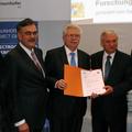 Sitemap > Presse & Kommunikation > Aktuelle Meldungen > Eröffnung der Fraunhofer-Projektgruppe „Elektrochemische Speicher“ > TUM-Präsident Herrmann, Wirtschaftsminister Zeil und FhG-Vorstand Buller bei der Übergabe des Förderbescheids - Foto: Andreas Battenberg / TUM