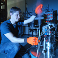 Sebastian Mühlbauer bei der Vorbereitung eines Experiments